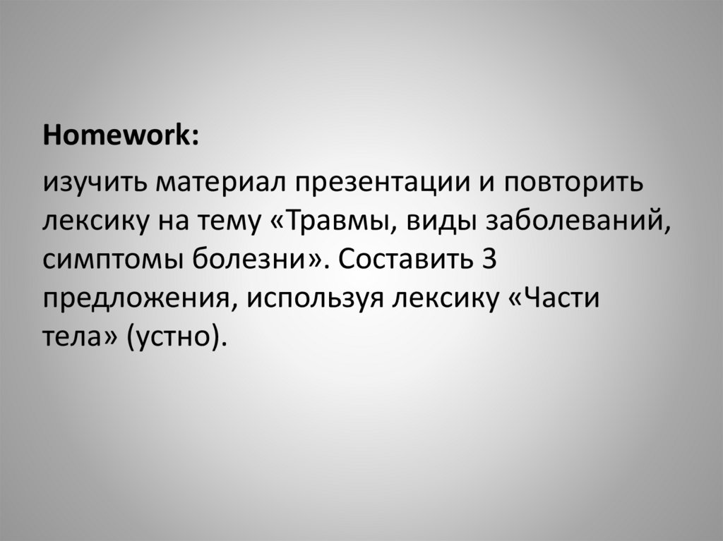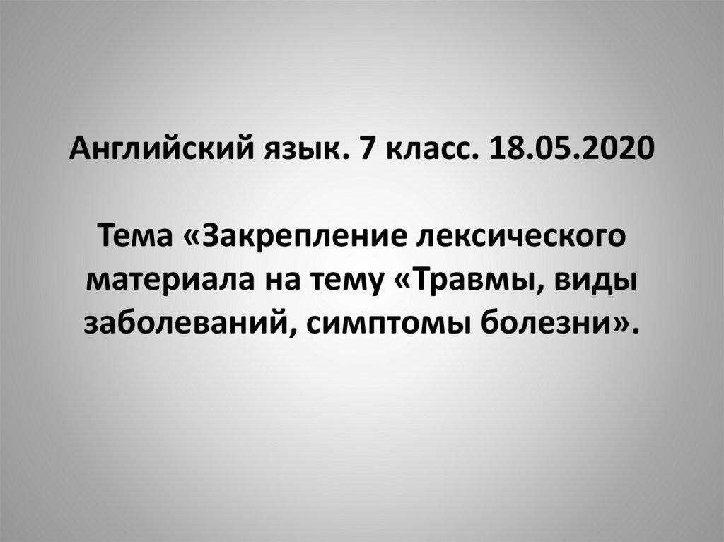 1. Английский язык. 7 класс. 18.05.2020 Тема «Закрепление лексического материала на тему «Травмы, виды заболеваний, симптомы