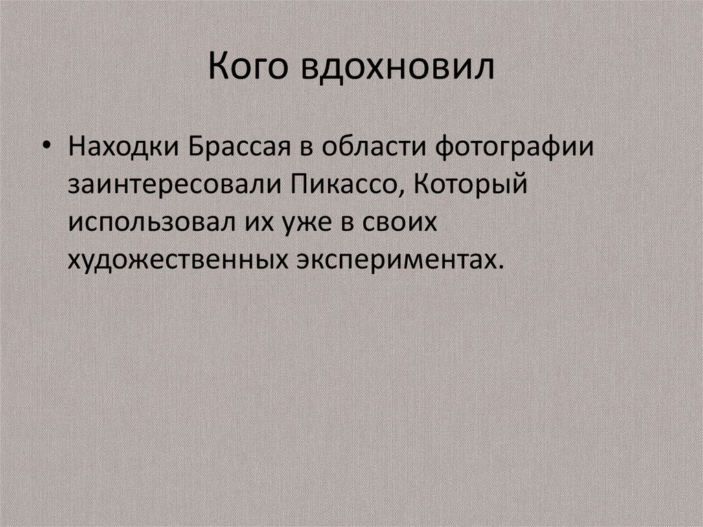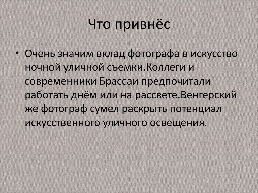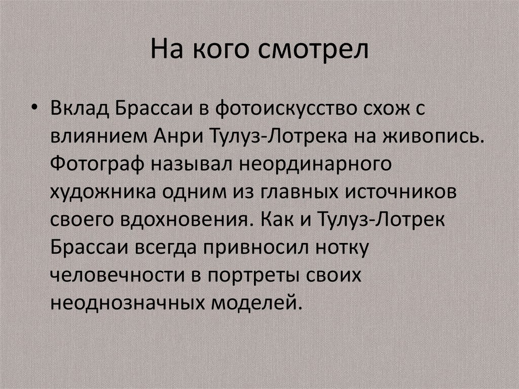 На кого смотрел• Вклад Брассаи в фотоискусство схож с