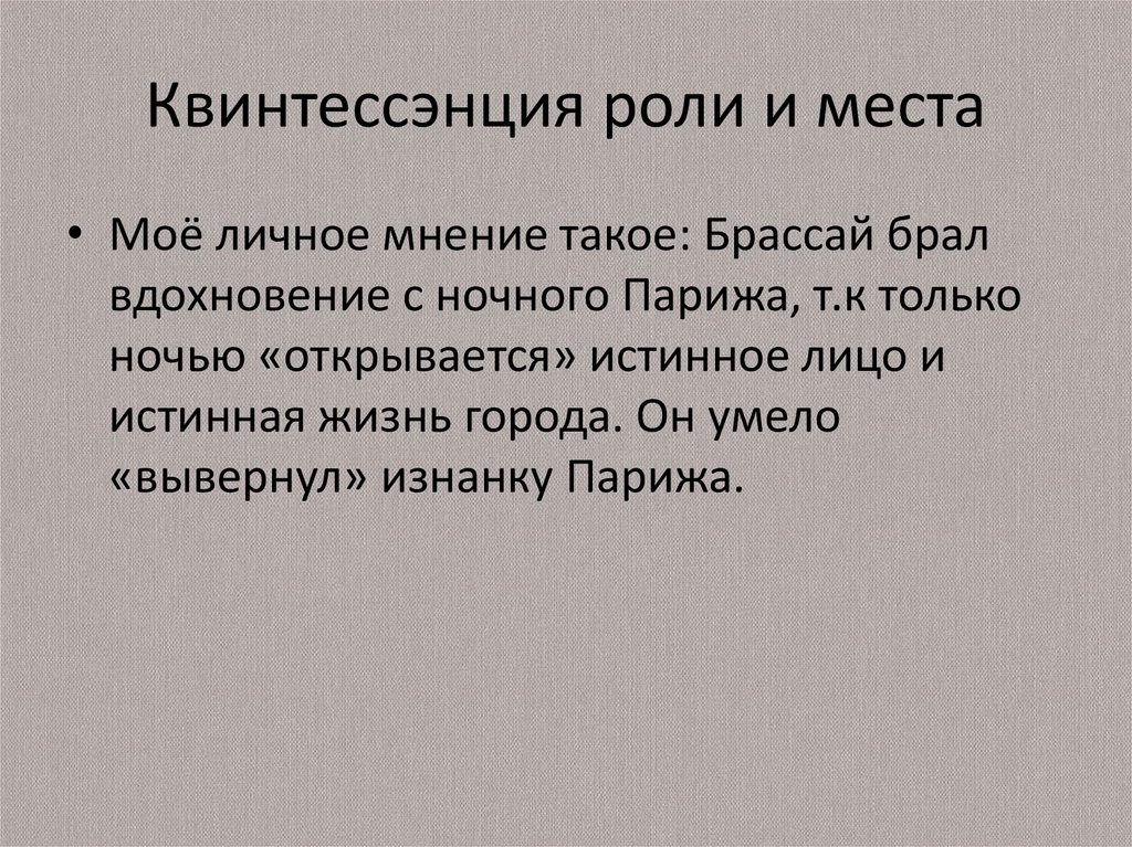 Квинтессэнция роли и места• Моё личное мнение такое: Брассай брал