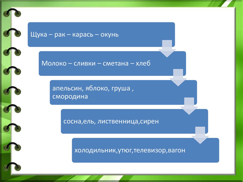 Щука – рак – карась – окуньМолоко – сливки – сметана – хлеб