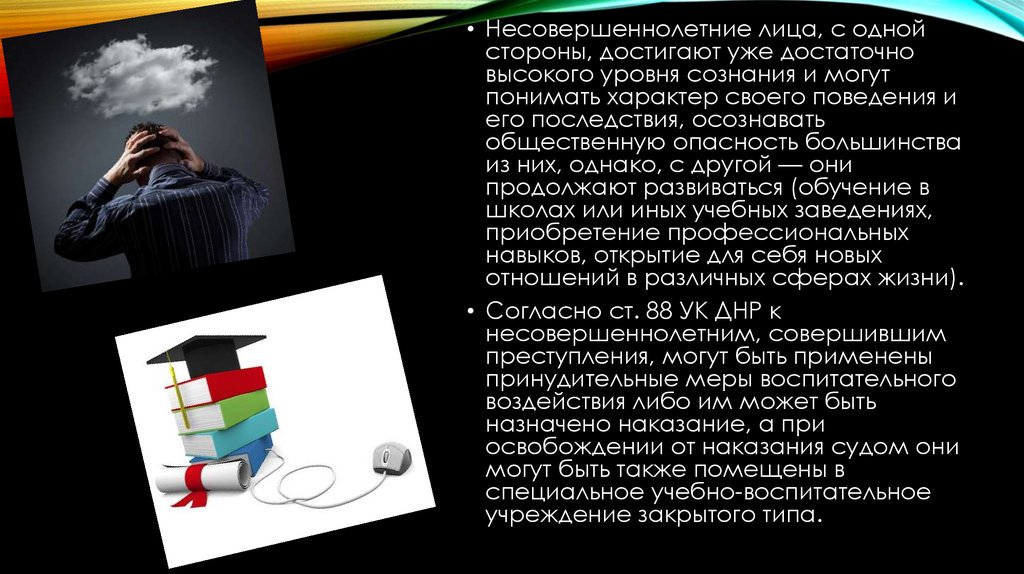 • Несовершеннолетние лица, с однойстороны, достигают уже достаточно