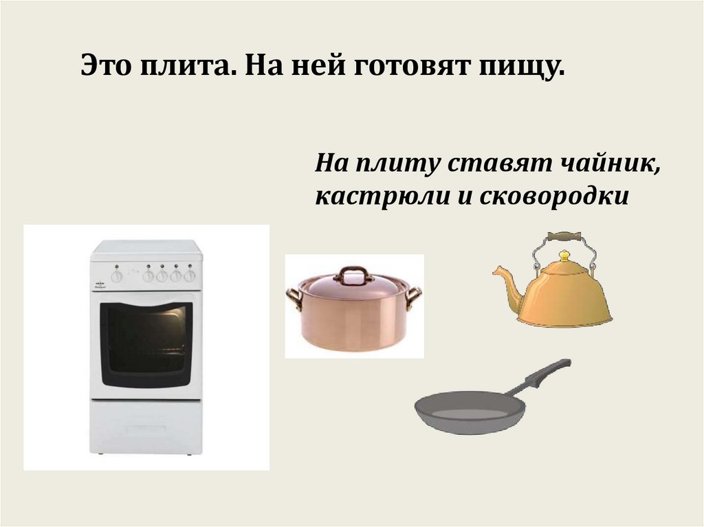 Это плита. На ней готовят пищу.На плиту ставят чайник,