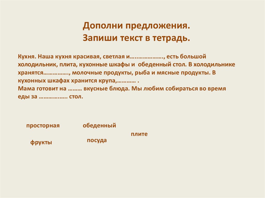 Дополни предложения.Запиши текст в тетрадь.