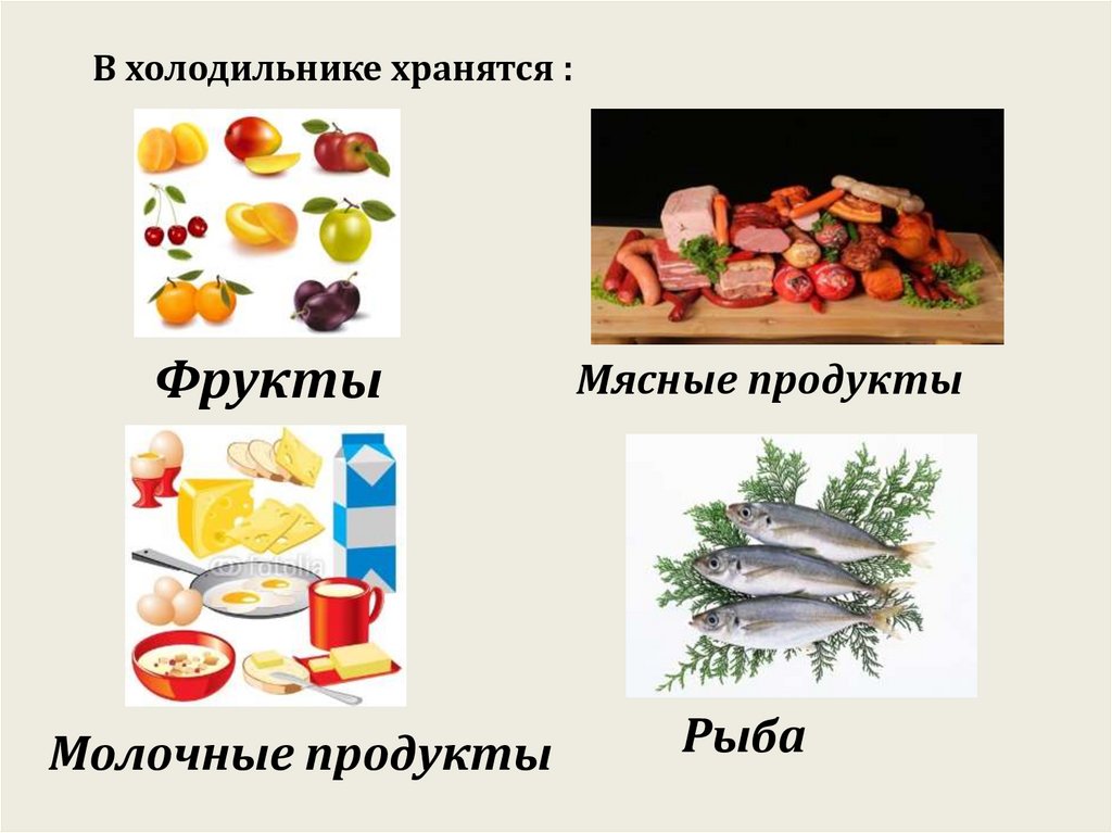 хранятся……………., молочные продукты, рыба и мясные продукты. В