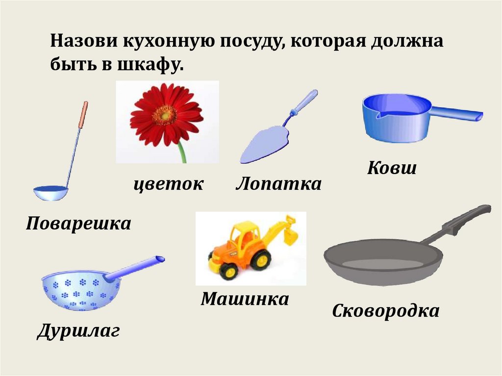 Назови кухонную посуду, которая должнабыть в шкафу.