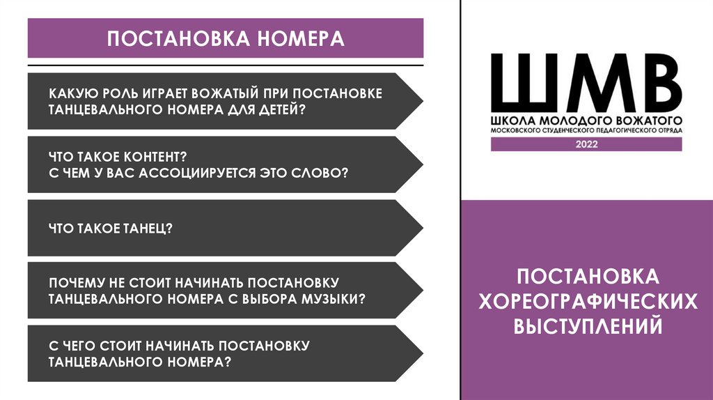 Вопросы, с которыми сталкивается вожатый при постановке хореографических выступлений