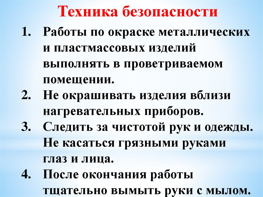 Техника безопасности1. Работы по окраске металлических
