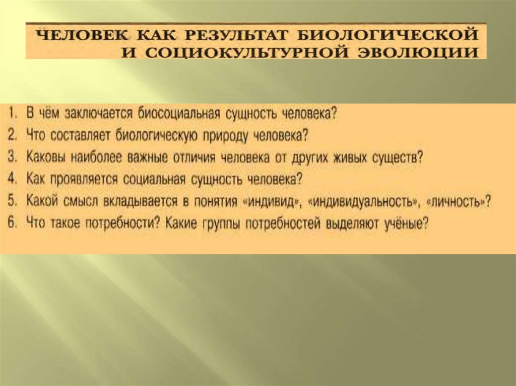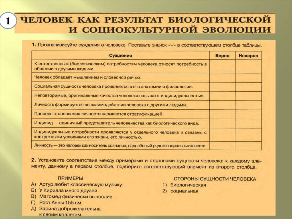Тема 1. Человека как результат биологической и социальной эволюцииЗадание №1: