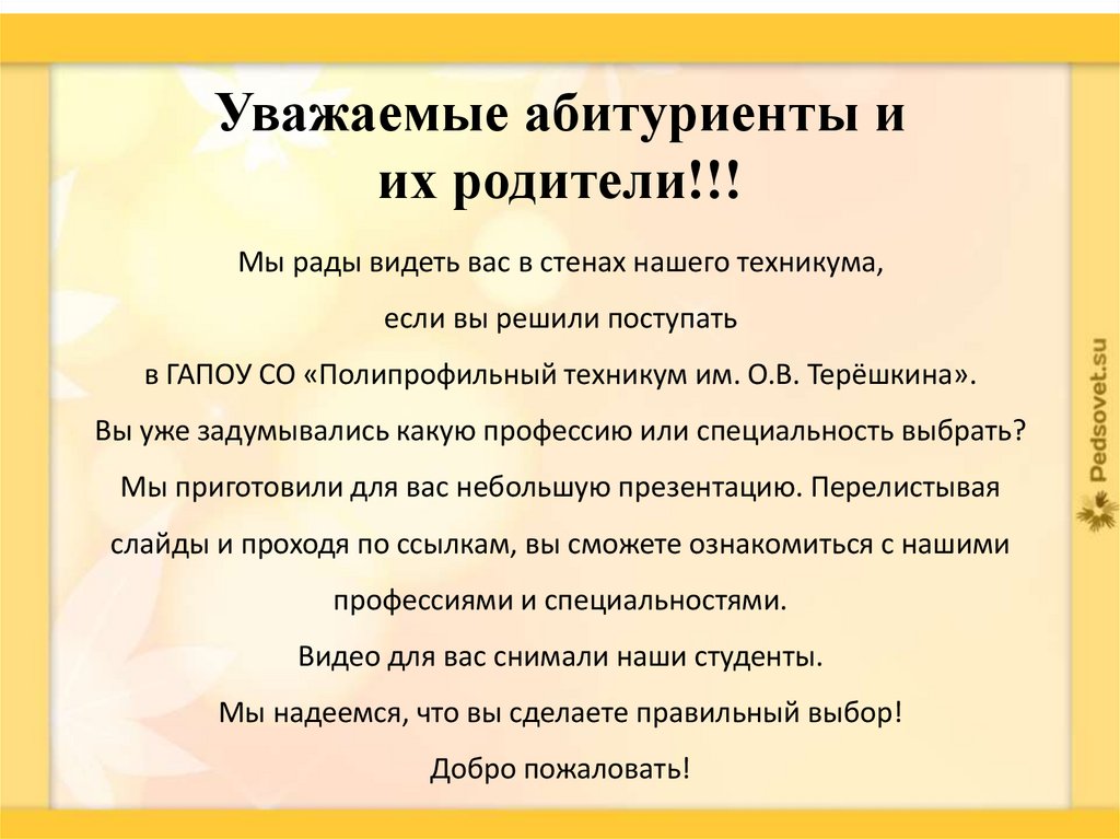 в ГАПОУ СО «Полипрофильный техникум им. О.В. Терёшкина».
