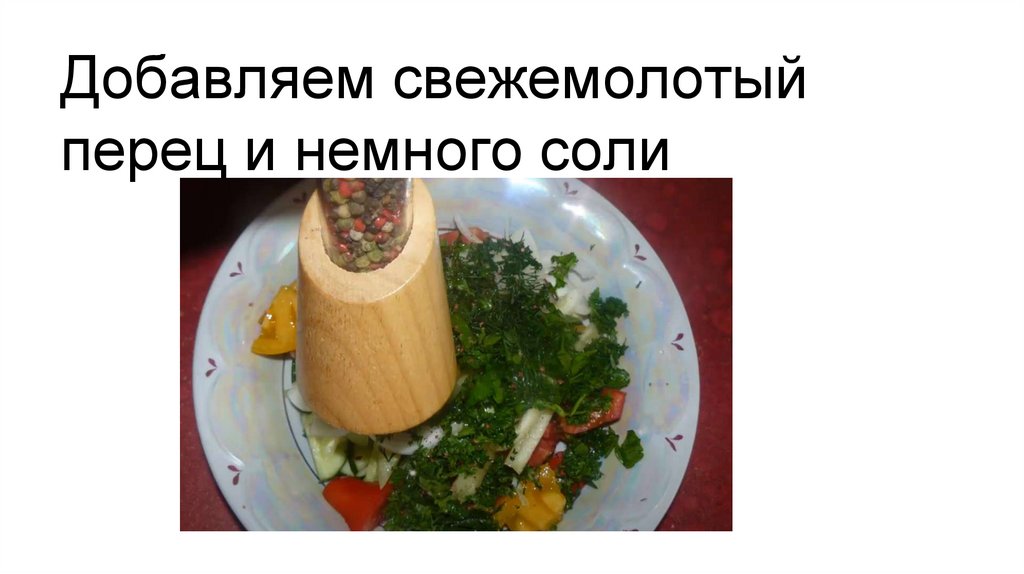 Добавляем свежемолотыйперец и немного соли