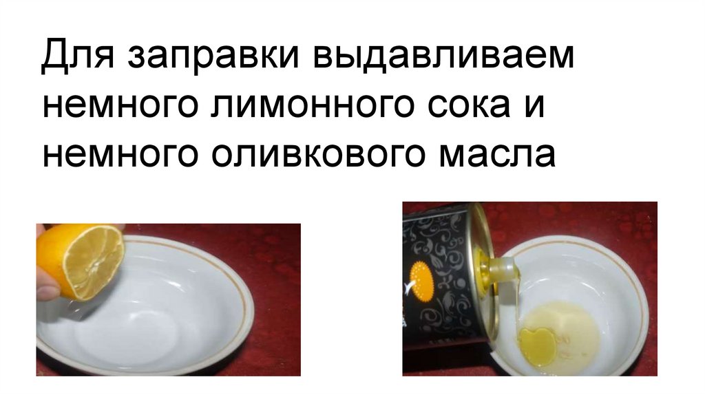 Для заправки выдавливаемнемного лимонного сока и