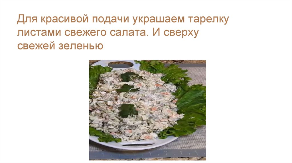 Для красивой подачи украшаем тарелкулистами свежего салата. И сверху