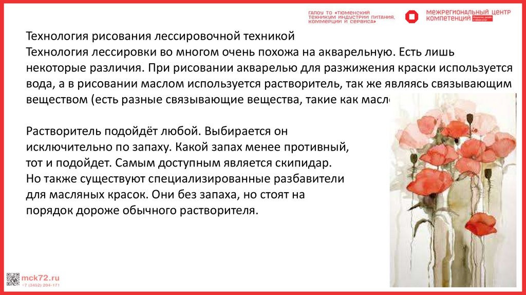 Технология рисования лессировочной техникойТехнология лессировки во многом очень похожа на акварельную. Есть лишь