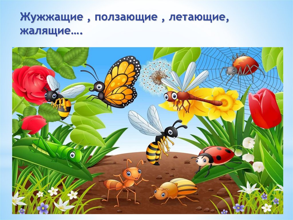 Жужжащие , ползающие , летающие, жалящие…. Насекомых на земле