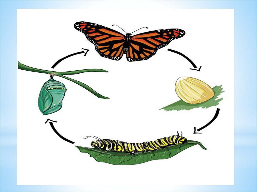 У бабочки, как известно, 4 стадии развития: яйцо, гусеница, куколка и