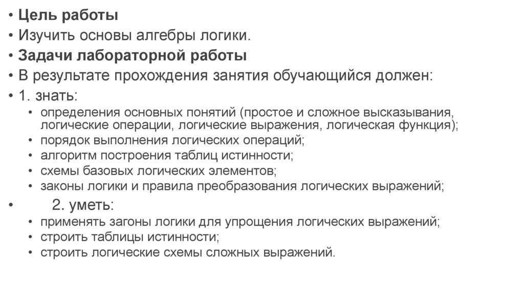• Цель работы• Изучить основы алгебры логики.