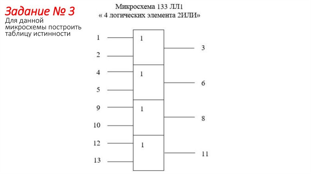 6. Задание № 2 Для данной микросхемы построить таблицу истинности