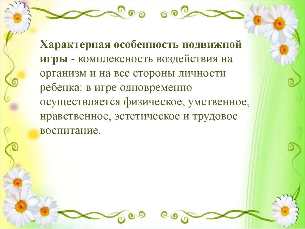 Характерная особенность подвижнойигры - комплексность воздействия на