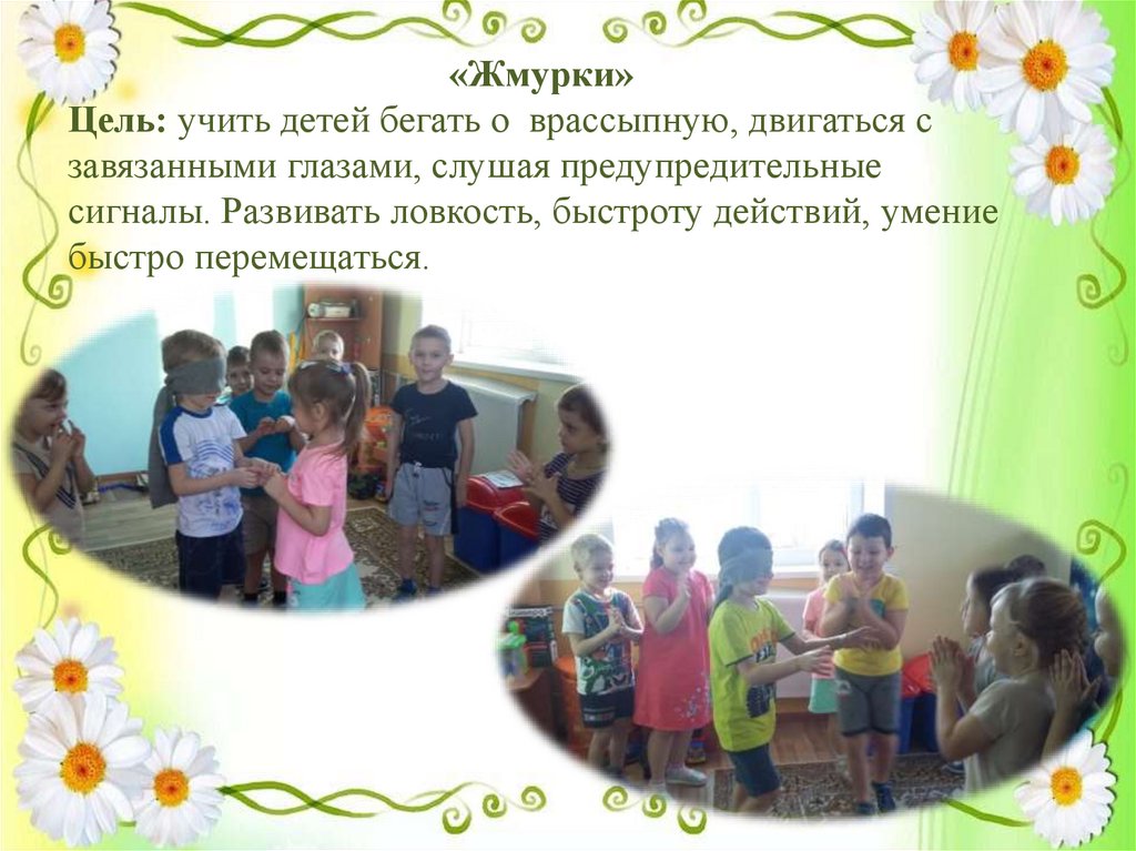 «Жмурки»Цель: учить детей бегать о врассыпную, двигаться с