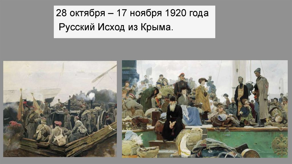 28 октября – 17 ноября 1920 годаРусский Исход из Крыма.