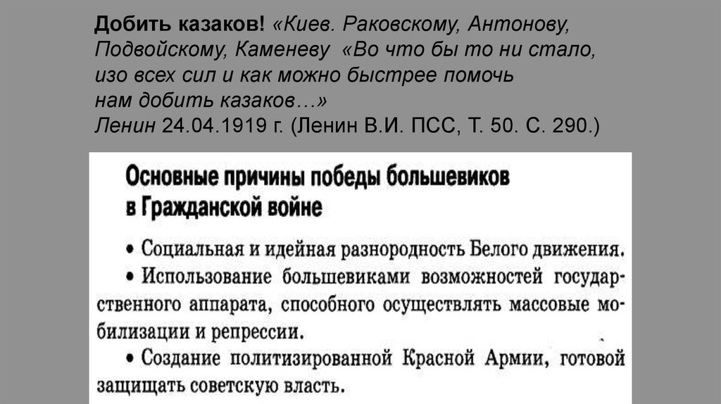 Добить казаков! «Киев. Раковскому, Антонову,Подвойскому, Каменеву «Во что бы то ни стало,
