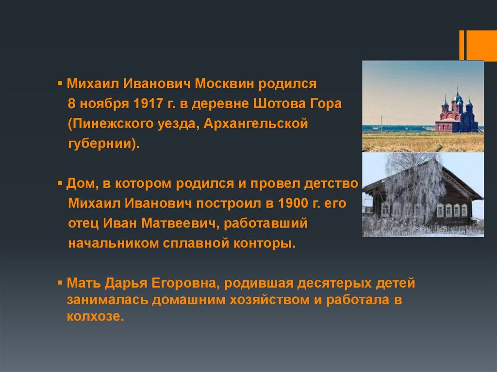Михаил Иванович Москвин родился8 ноября 1917 г. в деревне Шотова Гора