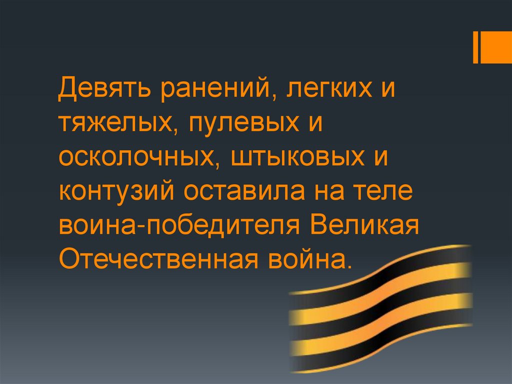 Девять ранений, легких итяжелых, пулевых и