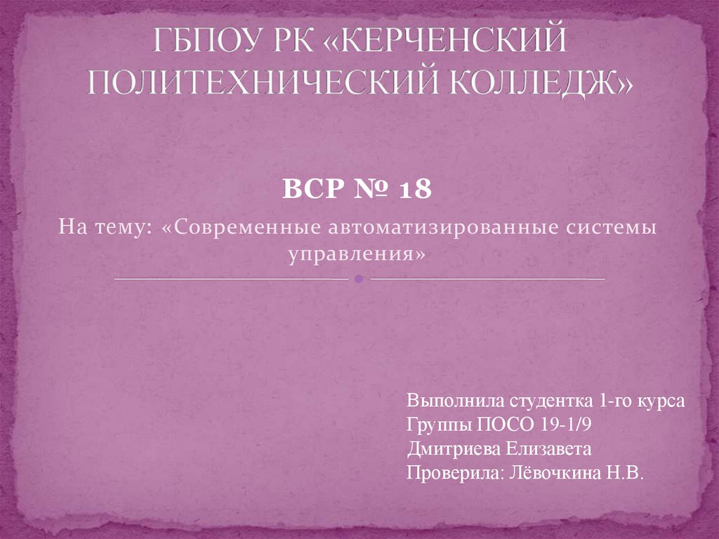 ВСР № 18На тему: «Современные автоматизированные системы