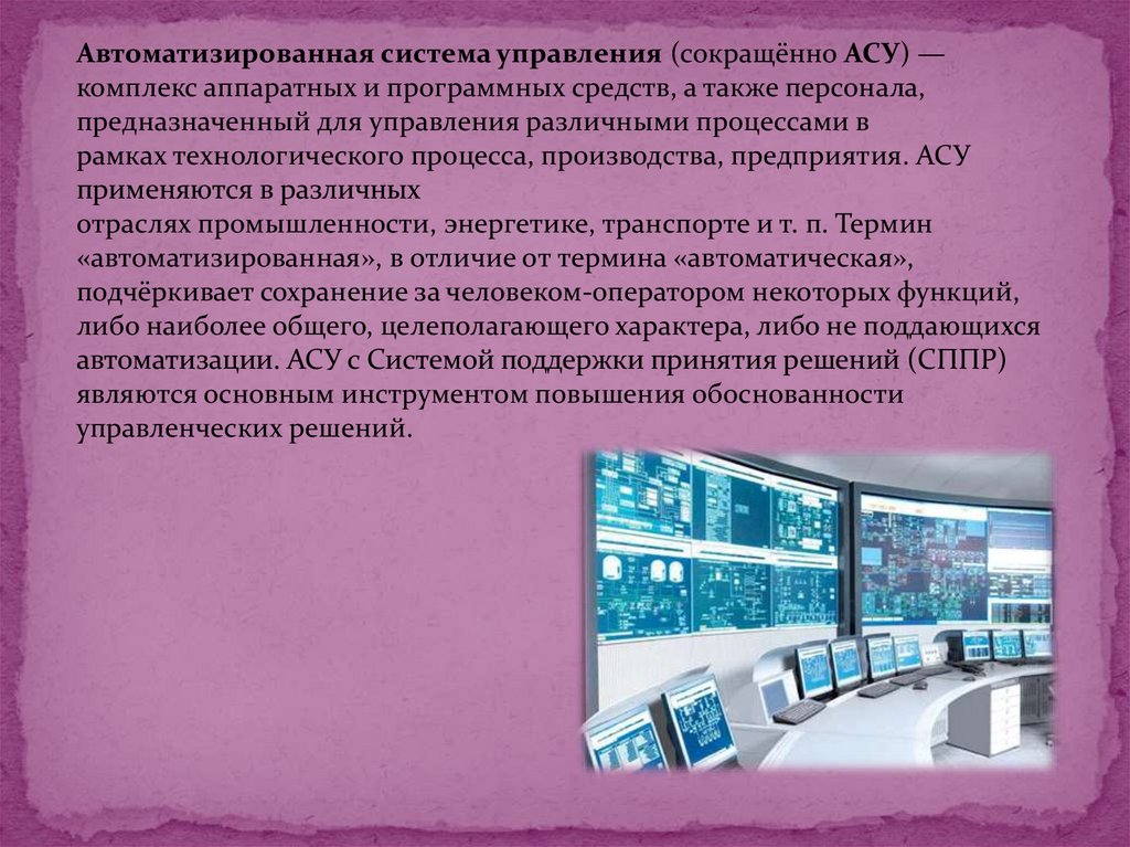автоматизации. АСУ с Системой поддержки принятия решений (СППР)