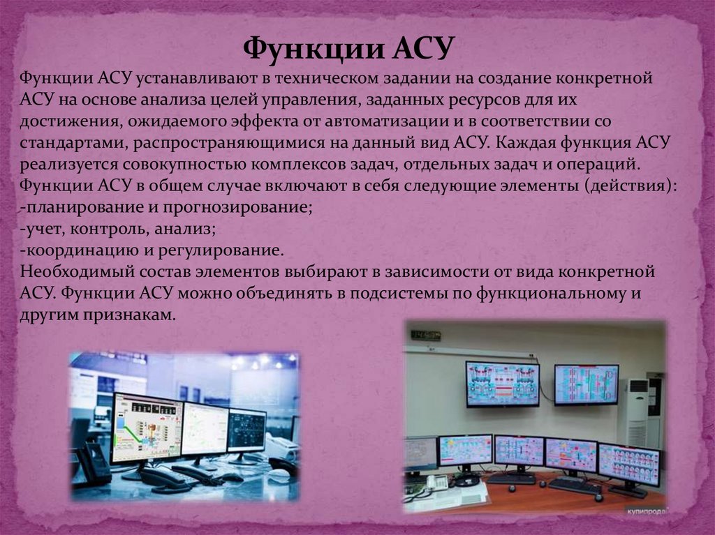 Функции АСУФункции АСУ устанавливают в техническом задании на создание конкретной