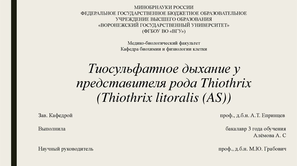 1. Тиосульфатное дыхание у представителя рода Thiothrix (Thiothrix litoralis (AS))