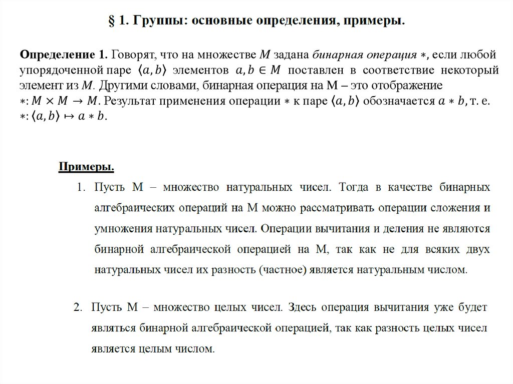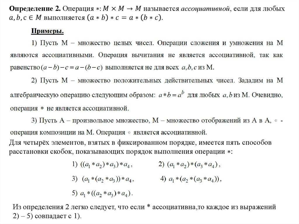 Определение 1. Говорят, что на множестве M задана бинарная операция ∗, если любойупорядоченной паре