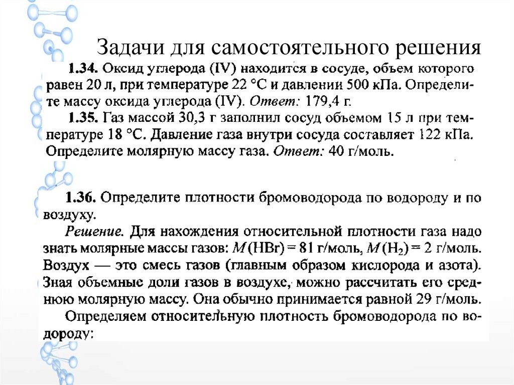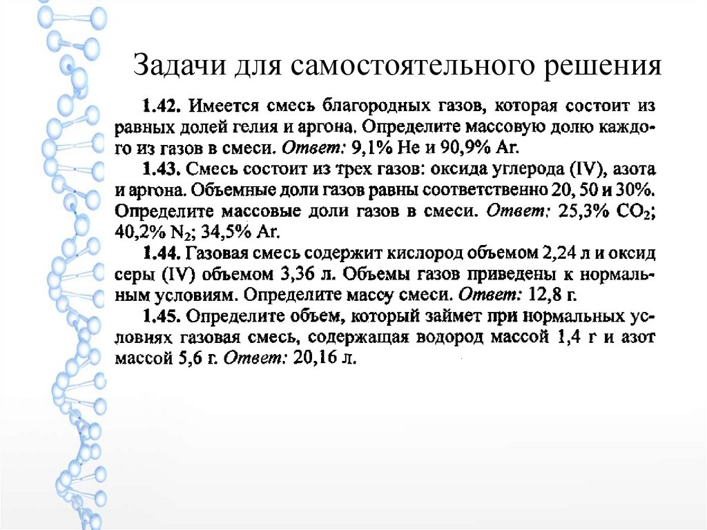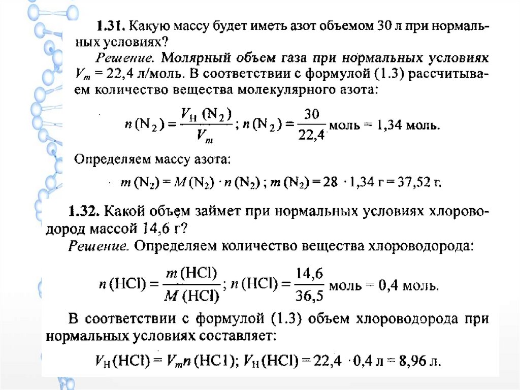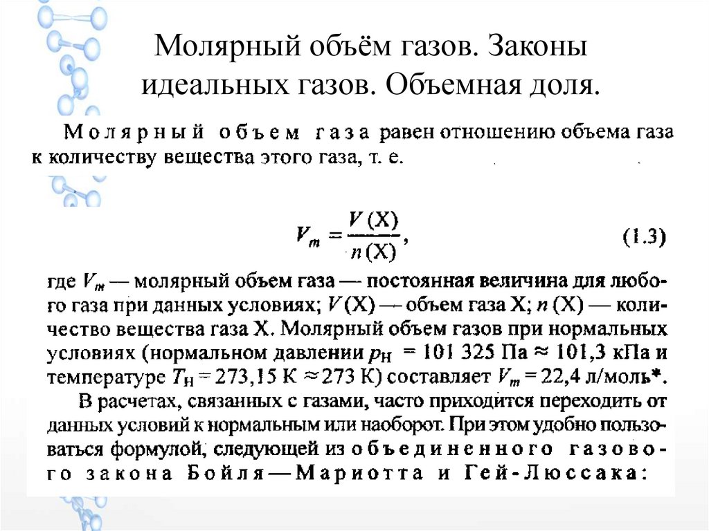 Молярный объём газов. Законыидеальных газов. Объемная доля.