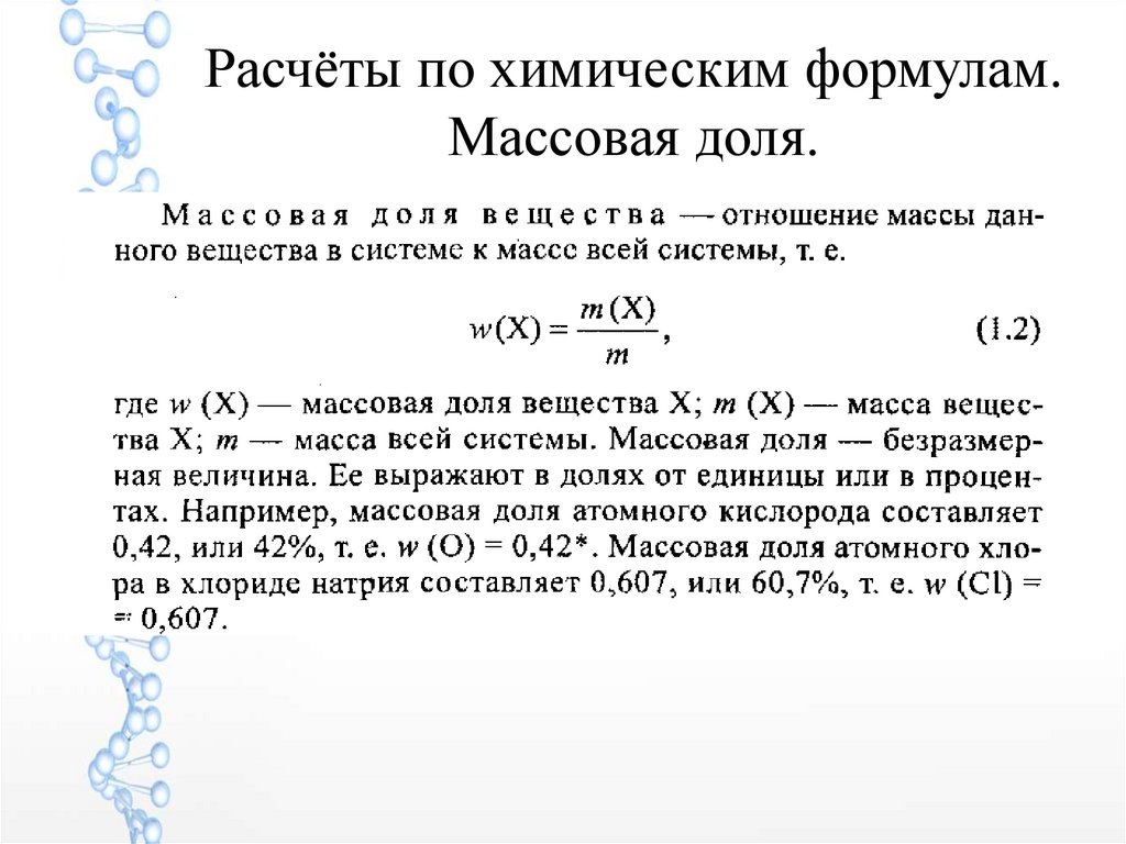 Расчёты по химическим формулам.Массовая доля.