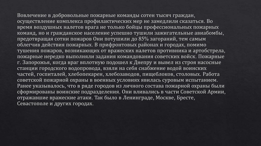 Роль пожарной охраны в Великой Отечественной Войне