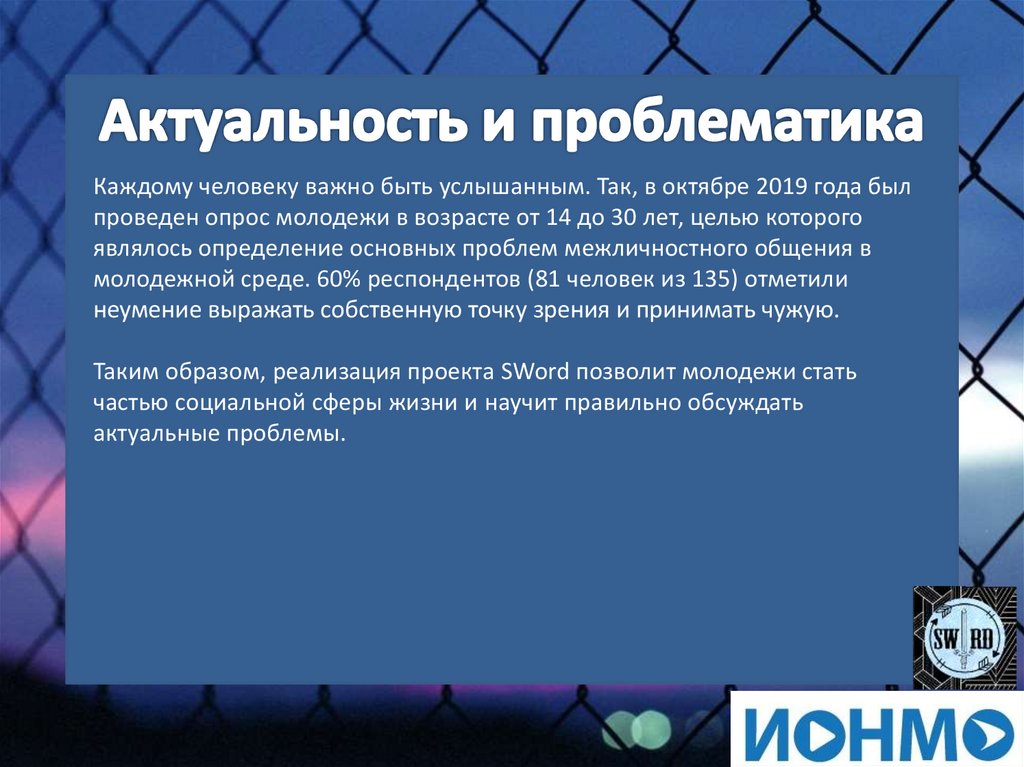 Таким образом, реализация проекта SWord позволит молодежи стать