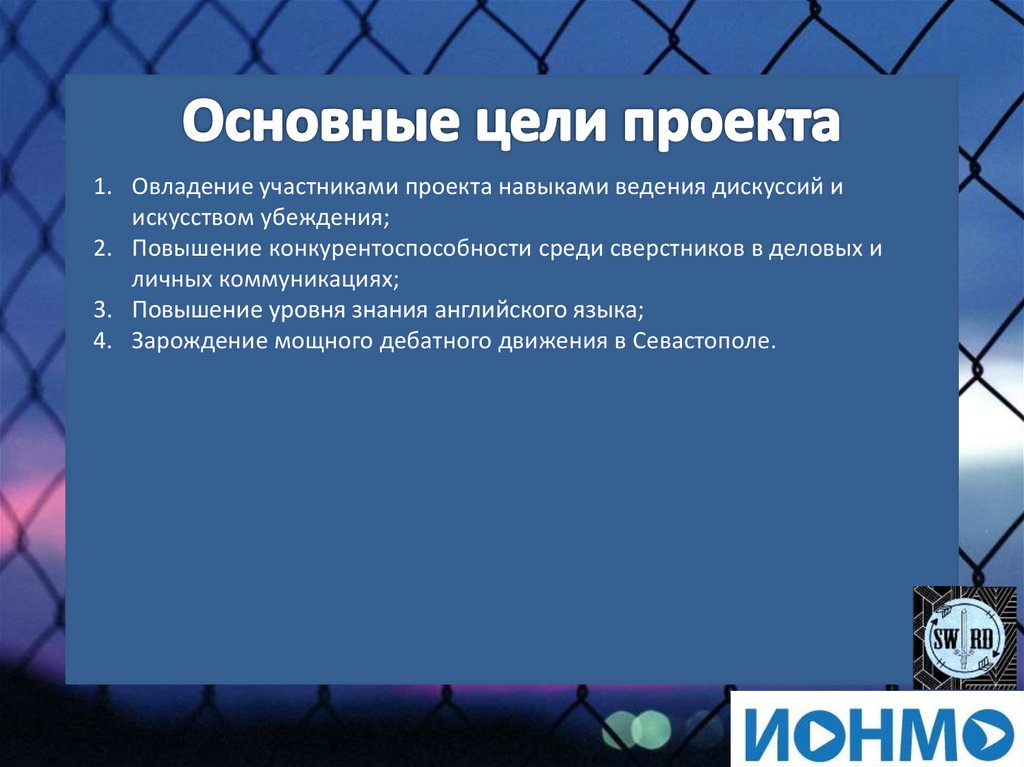 1. Овладение участниками проекта навыками ведения дискуссий иискусством убеждения;