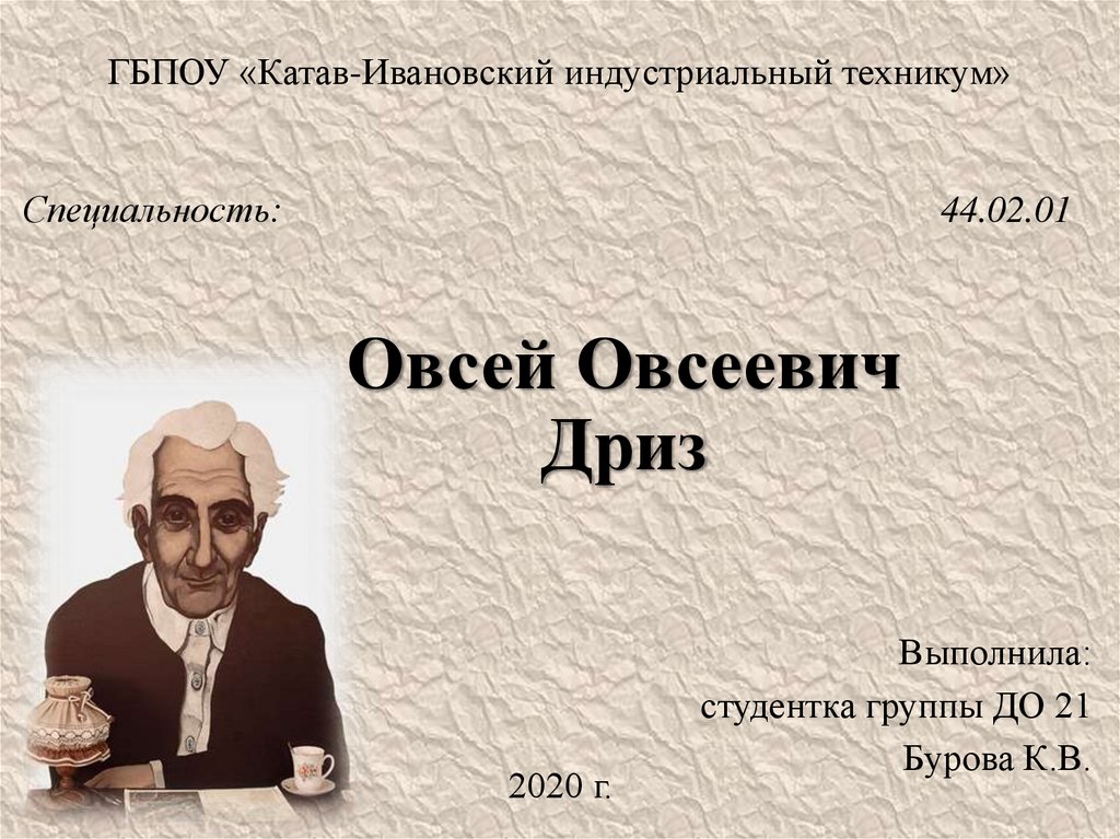 Овсей Овсеевич Дриз16 [29] марта 1908,