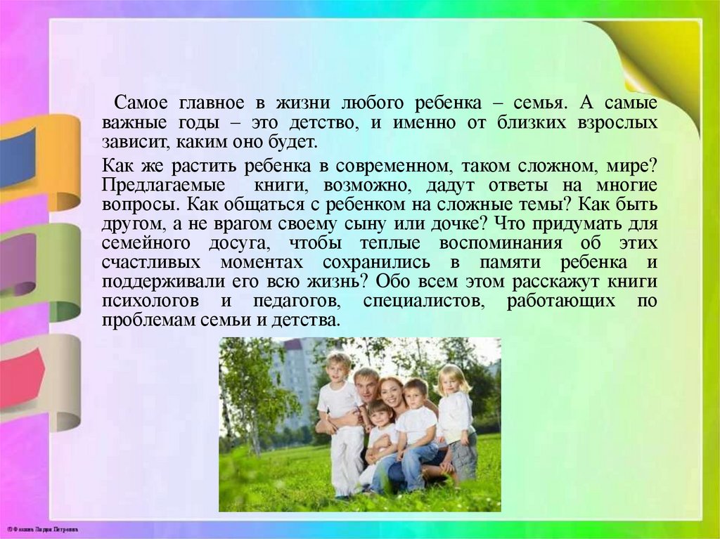 Самое главное в жизни любого ребенка – семья. А самыеважные годы – это детство, и именно от близких взрослых