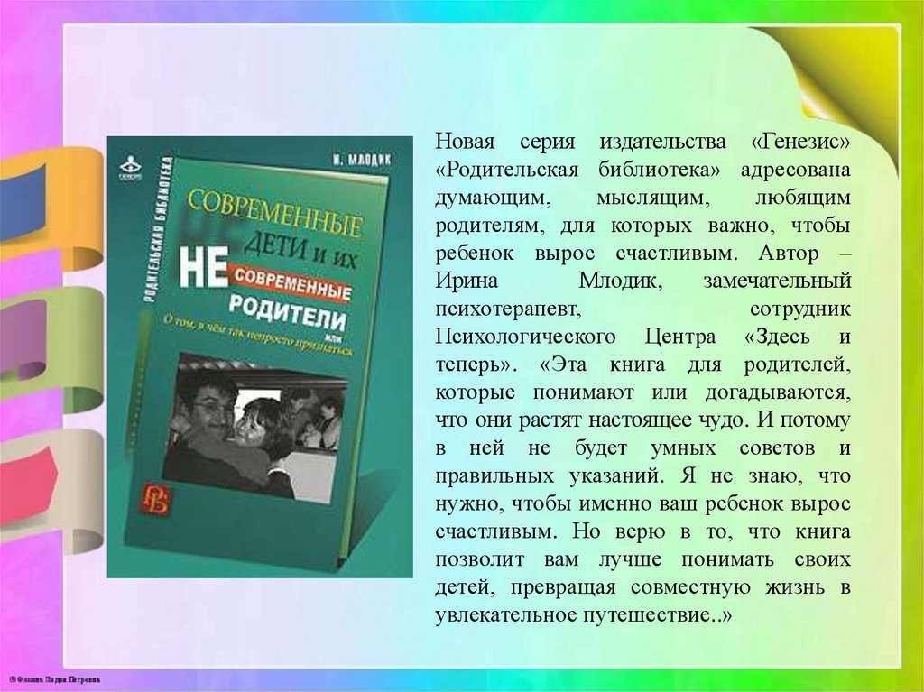 Новая серия издательства «Генезис»«Родительская библиотека» адресована