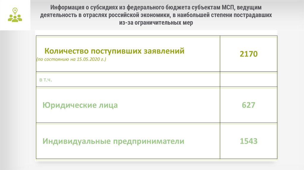 Информация о субсидиях из федерального бюджета субъектам МСП, ведущимдеятельность в отраслях российской экономики, в наибольшей степени пострадавших