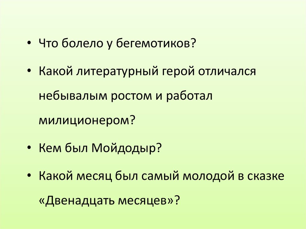 • Что болело у бегемотиков?• Какой литературный герой отличался
