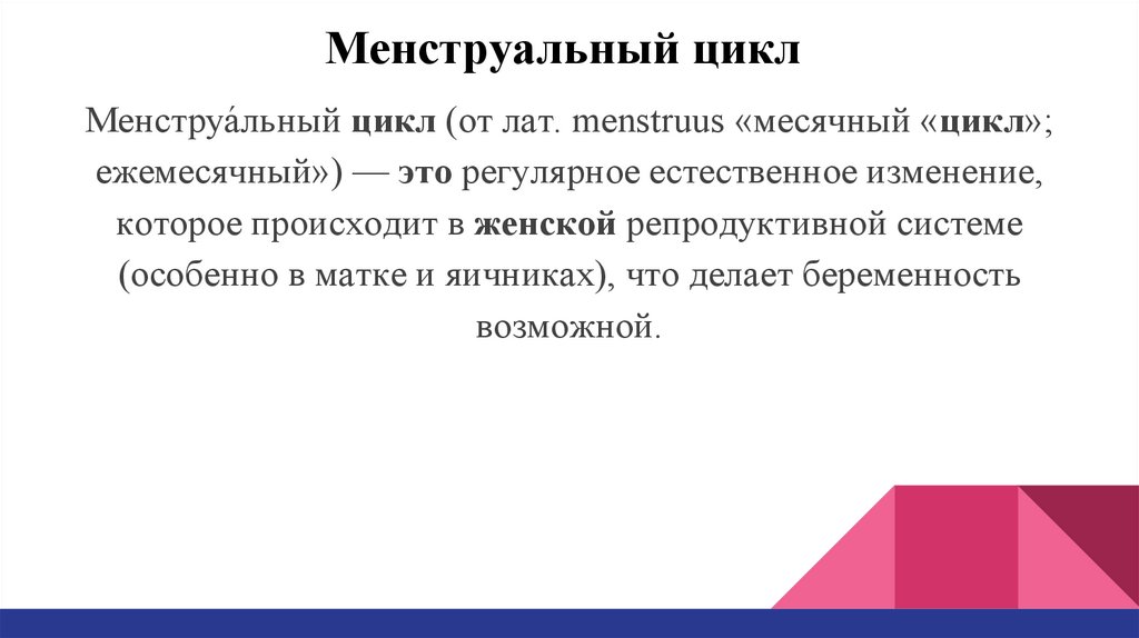 Менструальный циклМенструа́льный цикл (от лат. menstruus «месячный «цикл»;