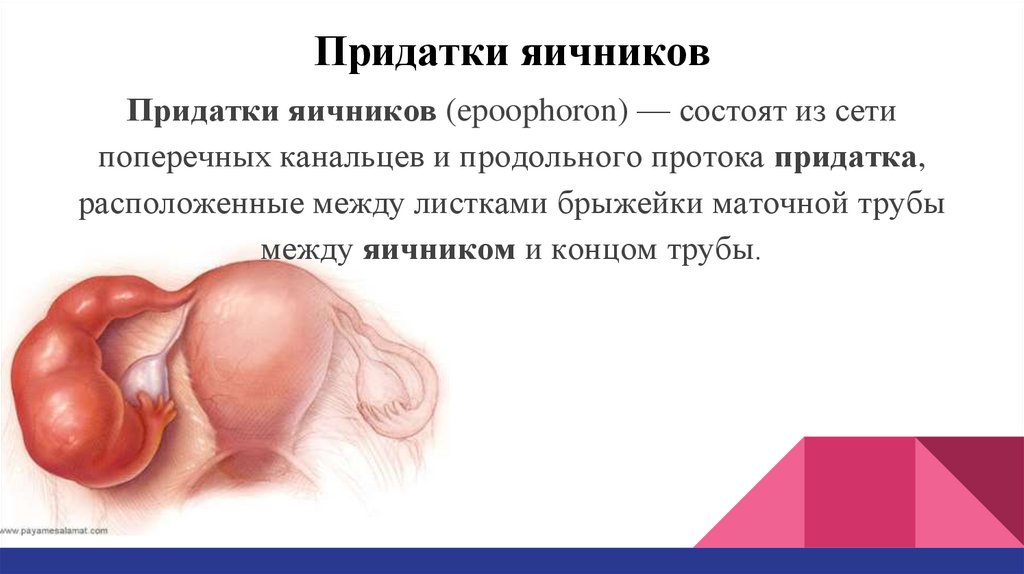 Придатки яичниковПридатки яичников (epoophoron) — состоят из сети