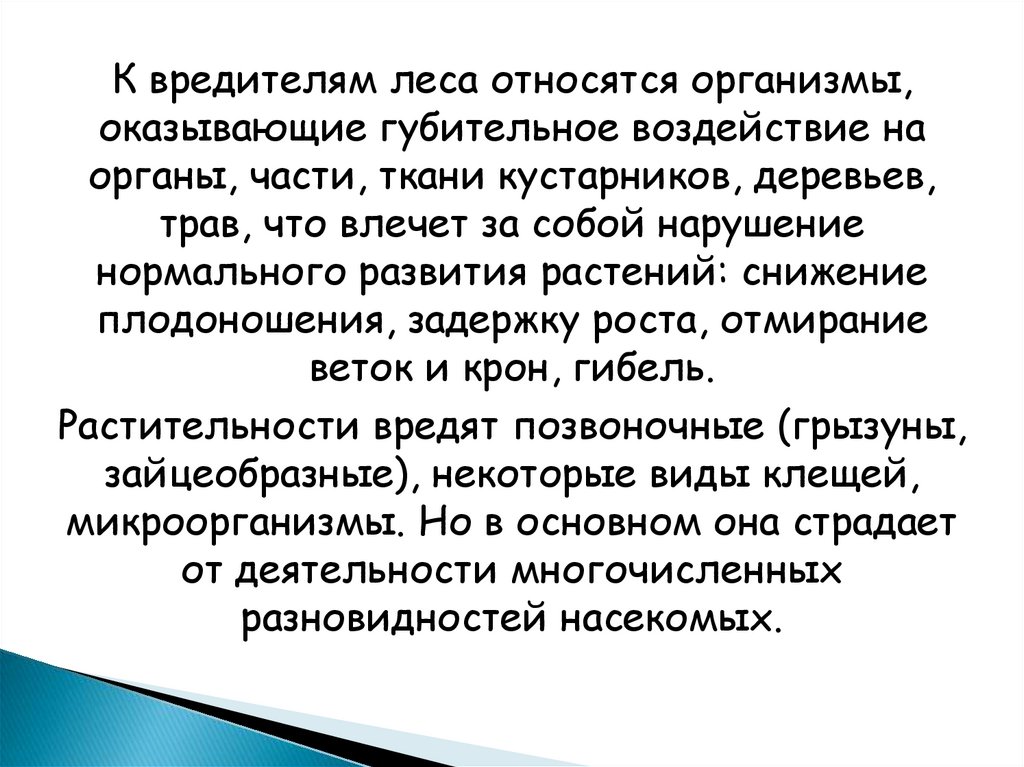 К вредителям леса относятся организмы,оказывающие губительное воздействие на