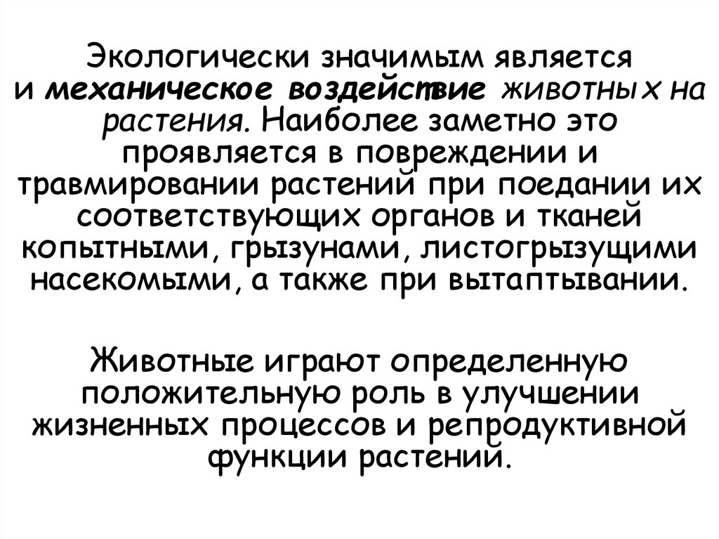 Зоогенные факторыНепосредственной и ощутимой формой влияния представителей