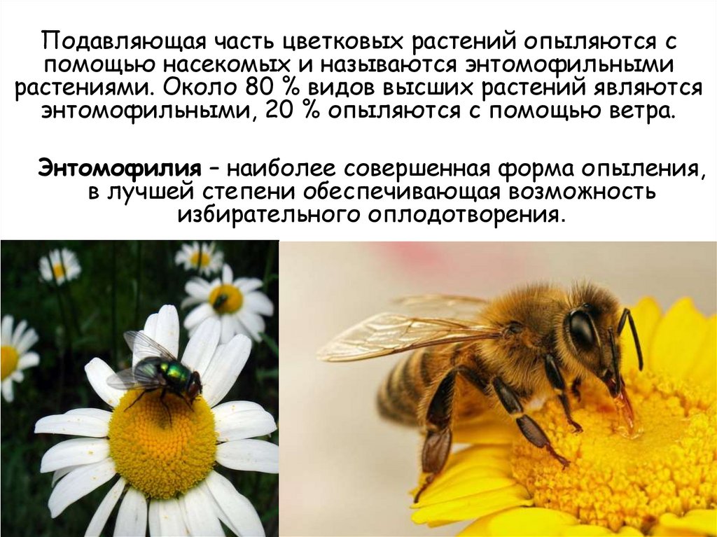 Подавляющая часть цветковых растений опыляются спомощью насекомых и называются энтомофильными