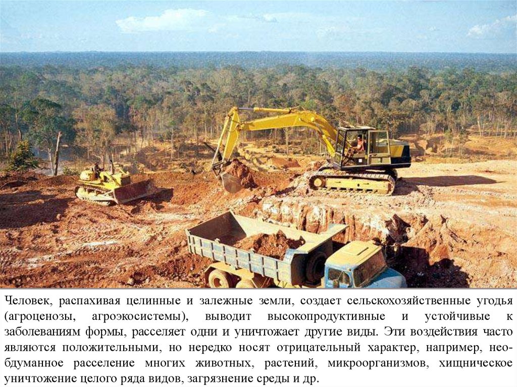 Человек, распахивая целинные и залежные земли, создает сельскохозяйственные угодья(агроценозы, агроэкосистемы), выводит высокопродуктивные и устойчивые к