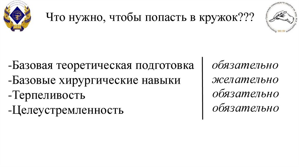 Что нужно, чтобы попасть в кружок???-Базовая теоретическая подготовка