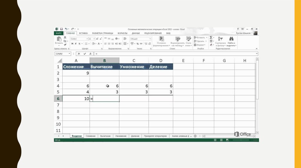 Интерфейс Exel8.
